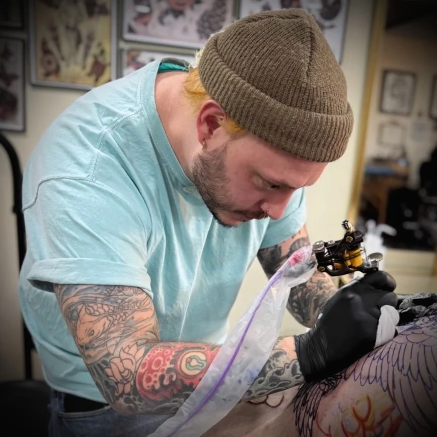 Jay Is a South Jersey local who has been tattooing since 2020. Although he works within a wide range of styles, his specialty and passion is creating bright and bold American traditional tattoos. When he isn’t using his 17-inch biceps to tattoo, you can usually find him sketching and painting fresh tattoo designs- just ask to check out his massive collection of available flash.